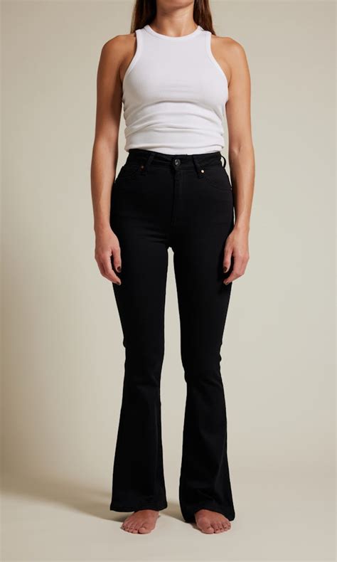 Str L 33 lengde En high waist flare jeans laget av en bomullsblanding. Jeansene har et høyt liv med buet design og utsvingte ben i ...